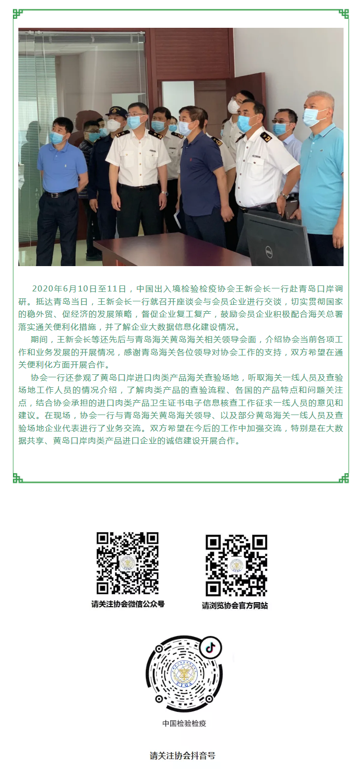 ÄúÏÖÔÚµÄλÖÃÊÇ£ºÊ×Ò³ > ͼƬÐÂÎÅ Öйú³öÈë¾³¼ìÑé¼ìÒßлáÁìµ¼Ò»Ðи°Çൺ¿Ú°¶µ÷ÑÐ ·¢²¼ÈÕÆÚ£º2020-06-15 ×ÖÌ壺 ¡¾Ð¡¡¿ ¡¾ÖС¿ ¡¾´ó¡¿ ·ÖÏí£º ÈÈÃÅÎÄÕ£º ¼ùÐС°Ëĸö·þÎñ¡± ÖúÁ¦ÆóÒµ³öº£¡ª¡ªÖйú³öÈë¾³¼ìÑé¼ìÒßлḰƽ¹Èµ÷ÑÐ[2025-01-22] Öйú³öÈë¾³¼ìÑé¼ìÒßлáÖúÁ¦°£Èû¶í±ÈÑǹú¼Ò¹Ý¿ª¹ÝÒÇʽ¡ª¡ªÉÖйú°£Èû¾Ã³ºÏ×÷ ¹²´´Á½¹úÈËÃñÃÀºÃÉú»î[2025-01-20] Íõл᳤»á¼û¼ÓÄôó¶¹ÀàлáGregory Allan Cherewyk»á³¤Ò»ÐÐ[2025-01-17] ʳÉÐбê Á캽δÀ´¡ª¡ªÖйú³öÈë¾³¼ìÑé¼ìÒßлá¾Ù°ìµÚÒ»½ì¡®âÒ¶¡½âÅ£¡¯¸ßÖÊÁ¿·¢Õ¹ÂÛ̳ôß¡¶ÉúÅ£Èâ±ý¡·ÍÅÌå±ê×¼·¢²¼»á[2025-01-12] ¿ÆÑÐʵÑéÊÒ¸ßÖÊÁ¿·¢Õ¹´ó»áÔ²ÂúÂäÄ»£º¹²Ì½´´Ð·¾¶£¬Ç¿»¯ÖÊÁ¿¹ÜÀí[2024-12-31] º£¹Ø×ÊѶ ¹ØÓÚ¶ÔÍ⿪·Å£¬Õþз¢²¼»áÓÐÕâЩÈȵãÖµµÃ¹Ø×¢£¡ ¡¾Öذõ·¢²¼¡¿Öйúº£¹ØÐÅÓùÜÀí·þÎñƽ̨£¨2.0°æ£©È«ÐÂÉÏÏߣ¡ º£¹Ø×ÜÊ𹫸æ2025ÄêµÚ29ºÅ£¨¹ØÓÚÔÝÍ£½ø¿ÚÃÀ¹úÔľµÄ¹«¸æ£© º£¹Ø×ÜÊ𹫸æ2025ÄêµÚ30ºÅ£¨¹ØÓÚÔÝÍ£ÃÀ¹úCHS Inc.µÈ3¼ÒÆóÒµ´ó¶¹Ê仪×ÊÖʵĹ«¸æ£© ÖзǾóÉî¶ÈºÏ×÷ÏÈÐÐÇø½¨Éè³ÉЧÏÔÖø¡ª¡ª·ÇÖÞºÃÎï¼Ó¿ì½øÈëÖйúÊг¡£¨ÐÂʱ´úÖзǺÏ×÷£© ¡¶º£¹Ø×ÜÊð¹ØÓÚÐÞ¶©¡´ÖлªÈËÃñ¹²ºÍ¹úº£¹ØÐÐÕþ´¦·£²ÃÁ¿»ù×¼£¨¶þ£©¡µµÄ¹«¸æ¡·Õþ²ß½â¶Á¼°ÈȵãÎÊÌâ½â´ð ¹úÎñÔº¹ØË°Ë°ÔòίԱ»á¹ØÓÚ¶ÔÔ²úÓÚÃÀ¹úµÄ²¿·Ö½ø¿ÚÉÌÆ·¼ÓÕ÷¹ØË°µÄ¹«¸æ£¨Ë°Î¯»á¹«¸æ2025ÄêµÚ2ºÅ£© ÖйúÓ벼¡µÏAEO»¥Èϰ²ÅÅÕýʽʵʩ