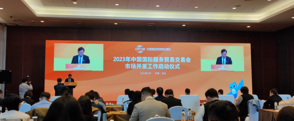 2月22日,2023年中国国际服务贸易交易会(简称“服贸会”)市场开发工作启动仪式在国家会议中心举办。启动仪式不仅展示了2022年服贸会市场开发工作的重要成果,同时也公开向全球品牌形象好、社会影响力大的企业和机构发出“携手前行共赢未来”的诚挚邀请。2023年服贸会将扩大市场开发范围,吸纳更多优质力量参与到服贸会筹办之中。