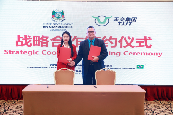 巴西南里奥格兰德州政府经济发展局(爱华德-达斯尔瓦) & 海南天交食品集团有限公司(黄丽萍)签署战略合作协议