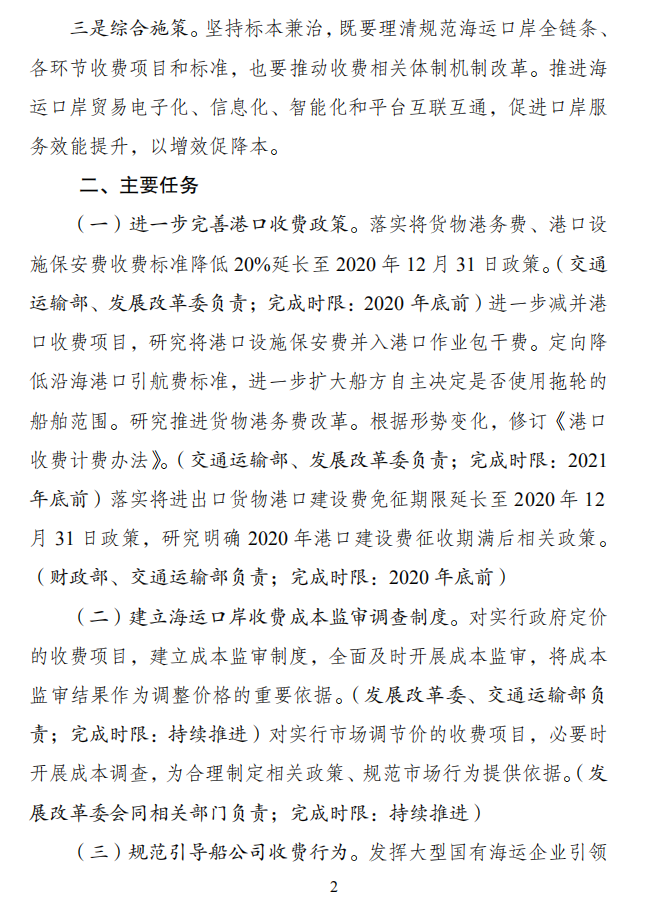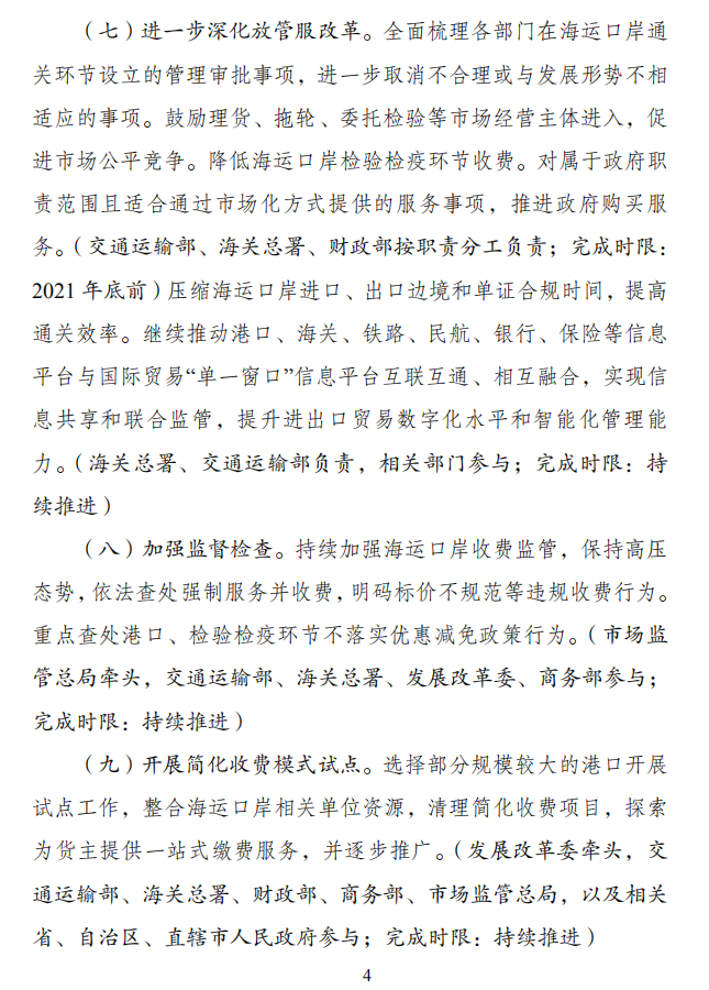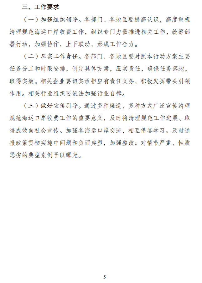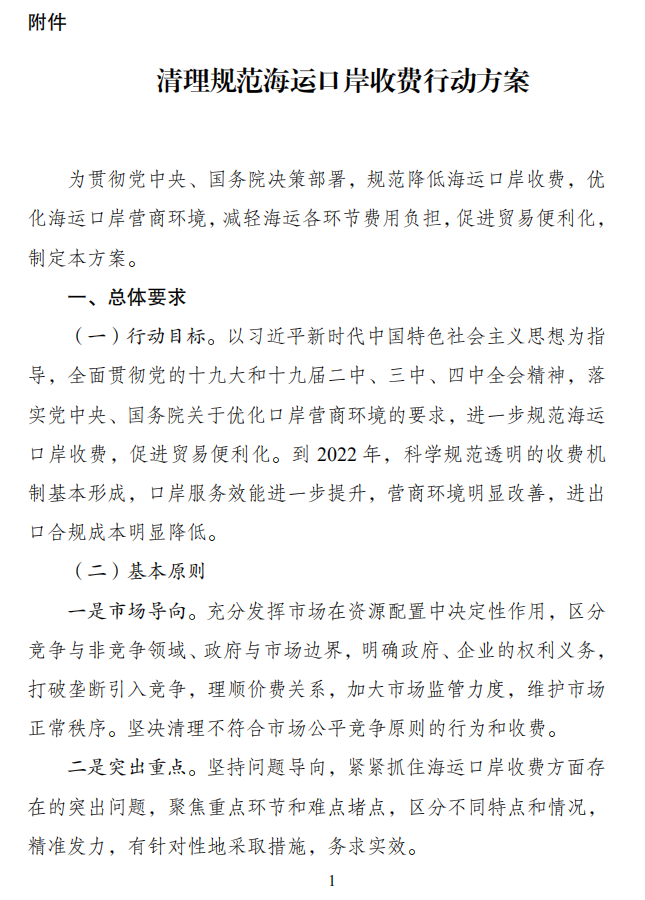 《清理规范海运口岸收费行动方案》全文如下