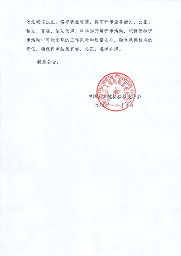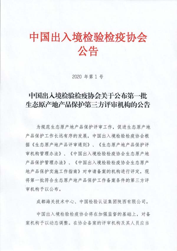 ÄúÏÖÔÚµÄλÖÃÊÇ£ºÊ×Ò³ > ¹¤×÷¶¯Ì¬Óë֪ͨ¹«¸æ Öйú³öÈë¾³¼ìÑé¼ìÒßÐ»á¹ØÓÚ¹«²¼µÚÒ»ÅúÉú̬ԲúµØ²úÆ·±£»¤µÚÈý·½ÆÀÉó»ú¹¹µÄ¹«¸æ ·¢²¼ÈÕÆÚ£º2020-12-03 ×ÖÌ壺 ¡¾Ð¡¡¿ ¡¾ÖС¿ ¡¾´ó¡¿ ·ÖÏí£º ÈÈÃÅÎÄÕ£º ½Ó°ôÆôк½ ¾ÛÁ¦ÏòδÀ´ | Öйú³öÈë¾³¼ìÑé¼ìÒßлáµÚÁù½ìµÚÒ»´Î»áÔ±´ú±í´ó»á[2026-01-28] ¼ì²âºÍУ׼ʵÑéÊÒÈϿɼ¼ÊõÅàѵ°àÔÚÎ÷°²³É¹¦¾Ù°ì[2025-12-16] ÖØ°õ£¡Öйú³öÈë¾³¼ìÑé¼ìÒßлá¹ú¼ÊóÒ×±ãÀû»¯·Ö»áÕýʽ³ÉÁ¢[2025-11-22] µÚÆß½ì¹ú¼Ê¼ì²©»áÔ²Âú¾Ù°ì£ºÁ´¶¯È«²úÒµÁ´£¬¹²Æô¼ìÑé¼ì²âÐÂÉú̬[2025-11-17] Öйú³öÈë¾³¼ìÑé¼ìÒßлá²Î¼ÓµÚ°Ë½ìÖйú¹ú¼Ê½ø¿Ú²©ÀÀ»á¼°Ïà¹Ø»î¶¯[2025-11-11] º£¹Ø×ÊѶ 2025Äê¸ÛÖé°Ä´óÇſڰ¶½ø³ö¿Ú»õÖµ³¬3000ÒÚÔª È¥ÄêÈ«¹úº£¹Ø²é»ñÍâÀ´ÎïÖÖ5439Åú´Î¡ª¡ª·À·¶¿Ú°¶ÈëÇÖ·çÏÕÈ¡µÃÍ»³ö³ÉЧ ¸²¸ÇÈ«ÇòÔ¼1/3¾¼Ã×ÜÁ¿£¬RCEPÕýʽÉúЧËÄÄêÁË¡ª¡ª¡°¼ÒÃſڡ±µÄÍâóÉúÒâÔ½À´Ô½Íú ÔÁ¸Û°Ä´óÍåÇøÄڵؾÅÊÐÍâó¹æÄ£´´ÀúÊ·ÐÂ¸ß º£¹Ø×ÜÊ𹫸æ2026ÄêµÚ12ºÅ£¨¹ØÓÚÆô¶¯½ø³ö¿Ú»õÎï¶àʽÁªÔË£¨º£Ìú¡¢Ë®Ë®²¿·Ö£©ÒµÎñģʽÊÔµãÏà¹ØÊÂÏîµÄ¹«¸æ£© º£¹Ø×ÜÊð ũҵũ´å²¿¹«¸æ2026ÄêµÚ11ºÅ£¨¹ØÓÚ½â³ý°ÍÎ÷ÄÏÀï°Â¸ñÀɵÂÖÝгÇÒßÒßÇé½ûÁîµÄ¹«¸æ£© ¡°Ê®ÎåÎ塱ʱÆÚº£¹Ø½«ÊʶÈÀ©´ó½ø¿Ú º£ÄÏ×Ôó¸Û·â¹ØÔË×÷¡°ÂúÔ¡±