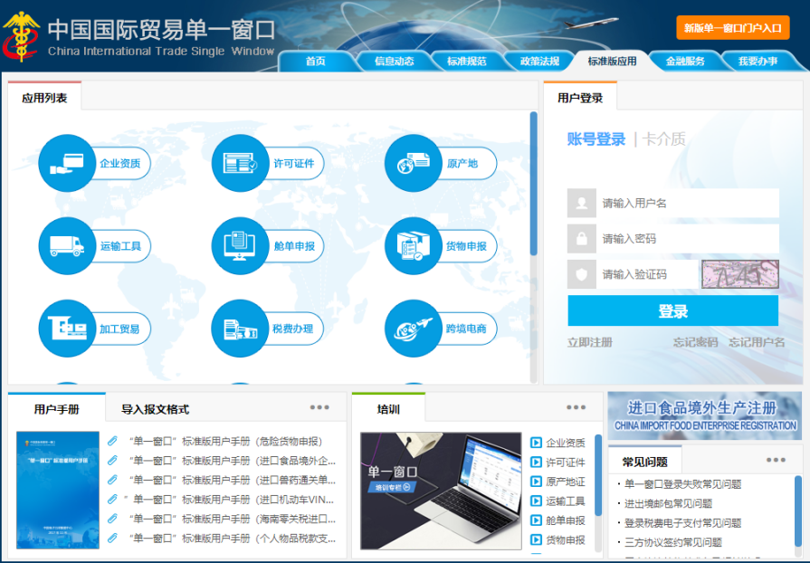 登录中国国际贸易单一窗口(https://www.singlewindow.cn/)点击进口食品境外生产企业注册进入注册系统页面。