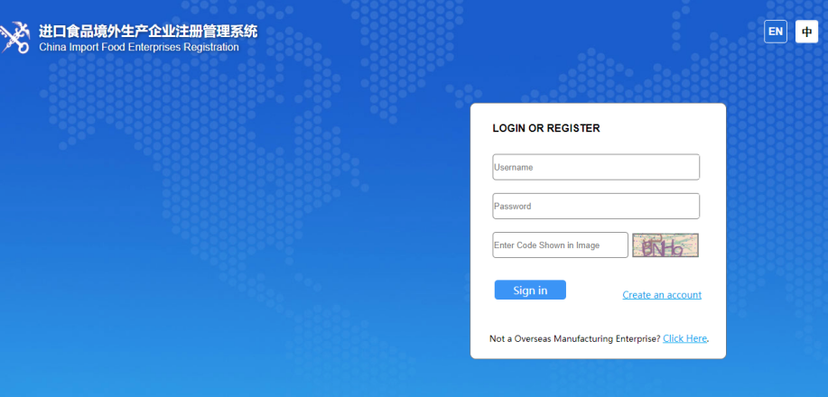 以上两种方式均可进入“进口食品境外生产企业注册管理系统”页面。