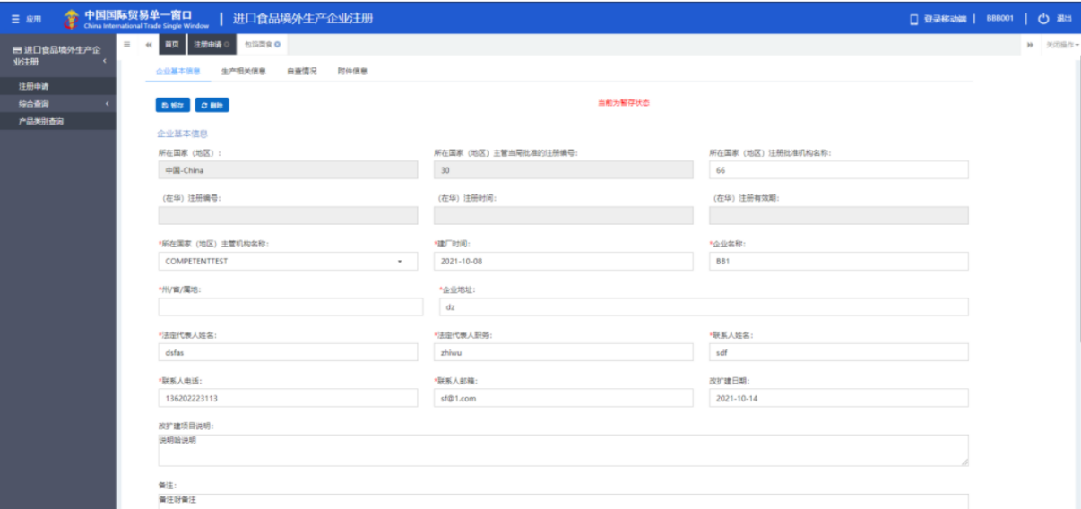(1)企业暂存、补齐补正状态,申请单可编辑修改并申报。