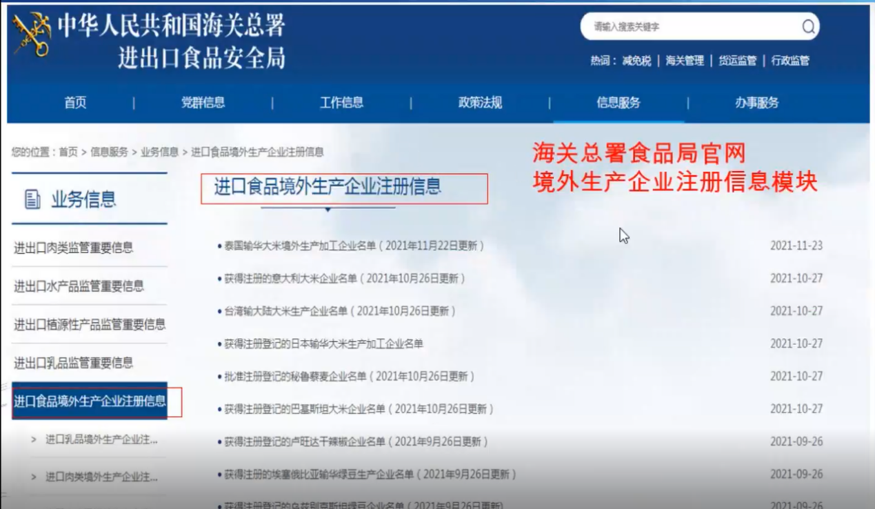 此外,海关总署食品局会根据审批情况在官网公布注册企业信息。查询网址: