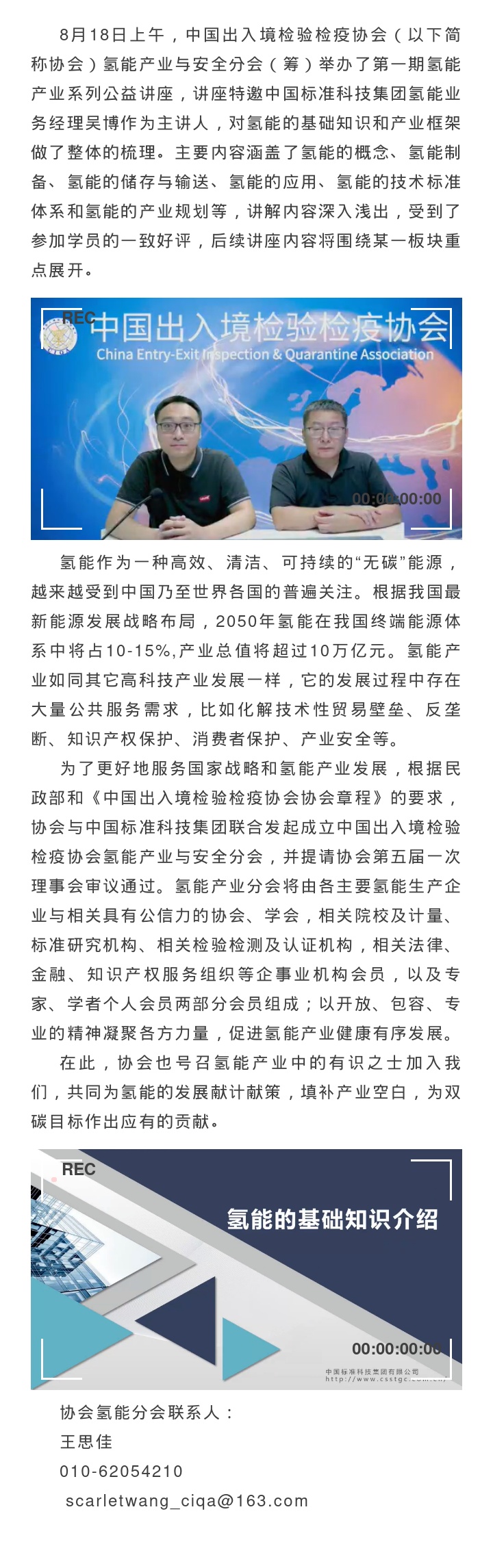 您现在的位置是:首页 > 工作动态与通知公告 分会活动 | 氢能产业系列公益讲座 发布日期:2022-08-19 字体: 【小】 【中】 【大】 分享: 热门文章: 接棒启新航 聚力向未来 | 中国出入境检验检疫协会第六届第一次会员代表大会[2026-01-28] 检测和校准实验室认可技术培训班在西安成功举办[2025-12-16] 重磅!中国出入境检验检疫协会国际贸易便利化分会正式成立[2025-11-22] 第七届国际检博会圆满举办:链动全产业链,共启检验检测新生态[2025-11-17] 中国出入境检验检疫协会参加第八届中国国际进口博览会及相关活动[2025-11-11] 海关资讯 2025年港珠澳大桥口岸进出口货值超3000亿元 去年全国海关查获外来物种5439批次——防范口岸入侵风险取得突出成效 覆盖全球约1/3经济总量,RCEP正式生效四年了——“家门口”的外贸生意越来越旺 粤港澳大湾区内地九市外贸规模创历史新高 海关总署公告2026年第12号(关于启动进出口货物多式联运(海铁、水水部分)业务模式试点相关事项的公告) 海关总署 农业农村部公告2026年第11号(关于解除巴西南里奥格郎德州新城疫疫情禁令的公告) “十五五”时期海关将适度扩大进口 海南自贸港封关运作“满月”