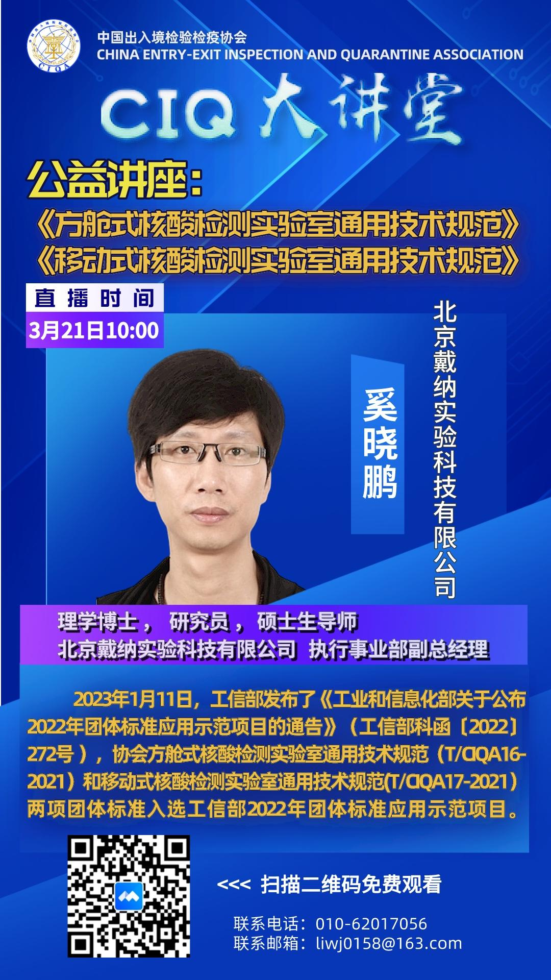 2023年1月11日,工信部发布了《工业和信息化部关于公布2022年团体标准应用示范项目的通告》(工信部科函〔2022〕272号 ),协会方舱式核酸检测实验室通用技术规范(T/CIQA16-2021)和移动式核酸检测实验室通用技术规范(T/CIQA17-2021)两项团体标准入选工信部2022年团体标准应用示范项目。