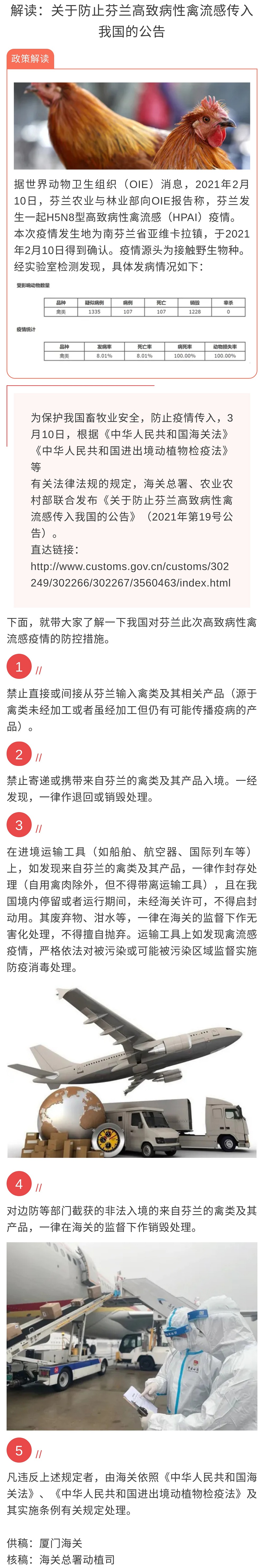 您现在的位置是:首页 > 海关资讯 解读:关于防止芬兰高致病性禽流感传入我国的公告 发布日期:2021-11-12 字体: 【小】 【中】 【大】 分享: 热门文章: 第六届国际检验检测技术与装备博览会在广州成功举办[2024-12-24] 2024检验检测与科学仪器跨年大聚会在粤隆重开幕![2024-12-22] 2024年I2SL国际可持续发展实验室会议成功举办[2024-12-09] 中国出入境检验检疫协会与国际可持续发展实验室协会签署合作备忘录[2024-12-09] 中国出入境检验检疫协会与新华网政企服务平台合作签约[2024-12-03] 海关资讯 海关总署公告2024年第196号(关于废止和宣布失效部分规范性文件(一)的公告) 稳外贸、稳外资 明年工作这么干 前11个月我国货物贸易进出口增长4.9% 稳增长、拓渠道——看外贸行业新亮点 多方发力蓄动能,我国外贸可望平稳收官 政策解读丨海关总署关于进口新加坡养殖水产品检验检疫要求的公告 海关总署公告2024年第188号(关于进口哈萨克斯坦牛皮检疫和卫生要求的公告) 海关总署公告2024年第186号(关于进口新加坡养殖水产品检验检疫要求的公告)