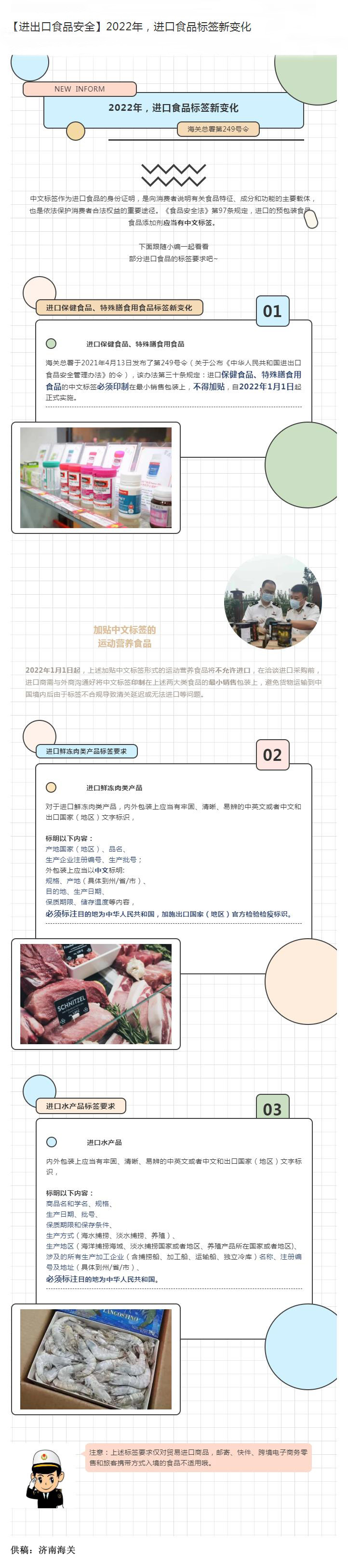 您现在的位置是:首页 > 海关资讯 【进出口食品安全】2022年,进口食品标签新变化 发布日期:2021-11-24 字体: 【小】 【中】 【大】 分享: 热门文章: 第六届国际检验检测技术与装备博览会在广州成功举办[2024-12-24] 2024检验检测与科学仪器跨年大聚会在粤隆重开幕![2024-12-22] 2024年I2SL国际可持续发展实验室会议成功举办[2024-12-09] 中国出入境检验检疫协会与国际可持续发展实验室协会签署合作备忘录[2024-12-09] 中国出入境检验检疫协会与新华网政企服务平台合作签约[2024-12-03] 海关资讯 海关总署公告2024年第196号(关于废止和宣布失效部分规范性文件(一)的公告) 稳外贸、稳外资 明年工作这么干 前11个月我国货物贸易进出口增长4.9% 稳增长、拓渠道——看外贸行业新亮点 多方发力蓄动能,我国外贸可望平稳收官 政策解读丨海关总署关于进口新加坡养殖水产品检验检疫要求的公告 海关总署公告2024年第188号(关于进口哈萨克斯坦牛皮检疫和卫生要求的公告) 海关总署公告2024年第186号(关于进口新加坡养殖水产品检验检疫要求的公告)