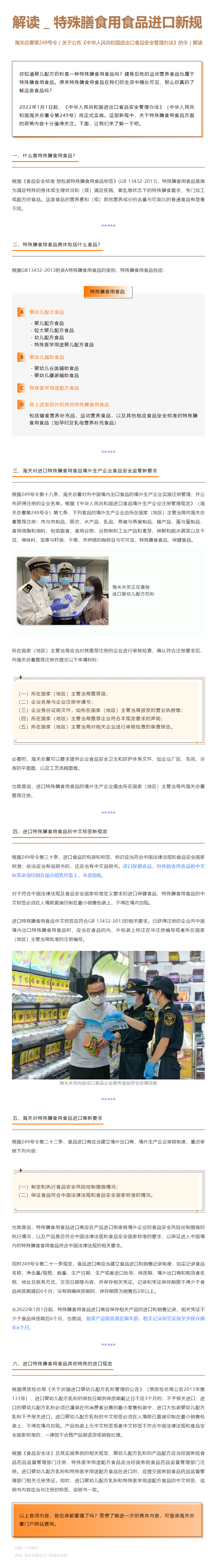 您现在的位置是:首页 > 海关资讯 解读 | 特殊膳食用食品进口新规 发布日期:2021-12-16 字体: 【小】 【中】 【大】 分享: 热门文章: 第六届国际检验检测技术与装备博览会在广州成功举办[2024-12-24] 2024检验检测与科学仪器跨年大聚会在粤隆重开幕![2024-12-22] 2024年I2SL国际可持续发展实验室会议成功举办[2024-12-09] 中国出入境检验检疫协会与国际可持续发展实验室协会签署合作备忘录[2024-12-09] 中国出入境检验检疫协会与新华网政企服务平台合作签约[2024-12-03] 海关资讯 海关总署公告2024年第196号(关于废止和宣布失效部分规范性文件(一)的公告) 稳外贸、稳外资 明年工作这么干 前11个月我国货物贸易进出口增长4.9% 稳增长、拓渠道——看外贸行业新亮点 多方发力蓄动能,我国外贸可望平稳收官 政策解读丨海关总署关于进口新加坡养殖水产品检验检疫要求的公告 海关总署公告2024年第188号(关于进口哈萨克斯坦牛皮检疫和卫生要求的公告) 海关总署公告2024年第186号(关于进口新加坡养殖水产品检验检疫要求的公告)
