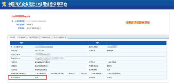 查询到企业信息,且海关注销标志显示为“正常”,即表示企业已成功在海关备案。