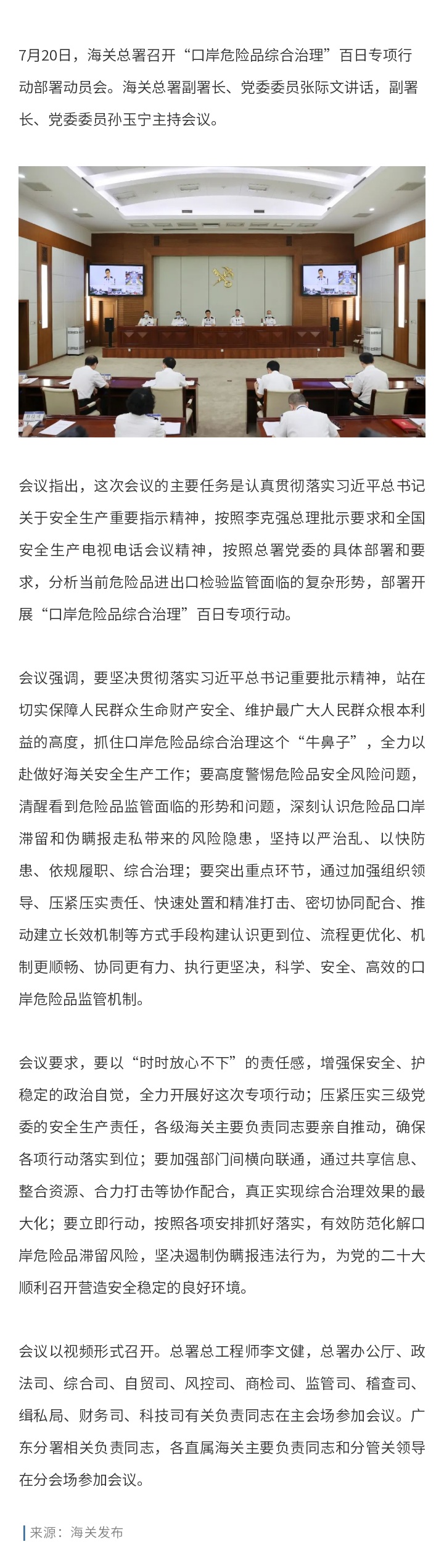 您现在的位置是:首页 > 海关资讯 海关总署召开“口岸危险品综合治理”百日专项行动部署动员会 发布日期:2022-07-21 字体: 【小】 【中】 【大】 分享: 热门文章: 2024检验检测与科学仪器跨年大聚会在粤隆重开幕![2024-12-22] 2024年I2SL国际可持续发展实验室会议成功举办[2024-12-09] 中国出入境检验检疫协会与国际可持续发展实验室协会签署合作备忘录[2024-12-09] 中国出入境检验检疫协会与新华网政企服务平台合作签约[2024-12-03] 携手共进 青春无“艾”-青年突击队参加世界艾滋病日主题活动[2024-12-02] 海关资讯 海关总署公告2024年第196号(关于废止和宣布失效部分规范性文件(一)的公告) 稳外贸、稳外资 明年工作这么干 前11个月我国货物贸易进出口增长4.9% 稳增长、拓渠道——看外贸行业新亮点 多方发力蓄动能,我国外贸可望平稳收官 政策解读丨海关总署关于进口新加坡养殖水产品检验检疫要求的公告 海关总署公告2024年第188号(关于进口哈萨克斯坦牛皮检疫和卫生要求的公告) 海关总署公告2024年第186号(关于进口新加坡养殖水产品检验检疫要求的公告)