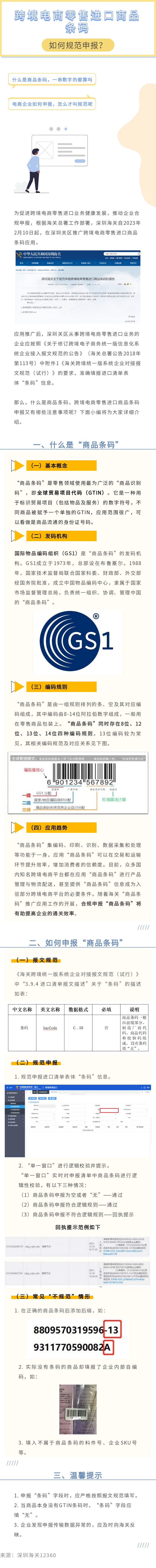 您现在的位置是:首页 > 海关资讯 跨境电商零售进口商品条码如何规范申报 发布日期:2023-02-20 字体: 【小】 【中】 【大】 分享: 热门文章: 2024检验检测与科学仪器跨年大聚会在粤隆重开幕![2024-12-22] 2024年I2SL国际可持续发展实验室会议成功举办[2024-12-09] 中国出入境检验检疫协会与国际可持续发展实验室协会签署合作备忘录[2024-12-09] 中国出入境检验检疫协会与新华网政企服务平台合作签约[2024-12-03] 携手共进 青春无“艾”-青年突击队参加世界艾滋病日主题活动[2024-12-02] 海关资讯 海关总署公告2024年第196号(关于废止和宣布失效部分规范性文件(一)的公告) 稳外贸、稳外资 明年工作这么干 前11个月我国货物贸易进出口增长4.9% 稳增长、拓渠道——看外贸行业新亮点 多方发力蓄动能,我国外贸可望平稳收官 政策解读丨海关总署关于进口新加坡养殖水产品检验检疫要求的公告 海关总署公告2024年第188号(关于进口哈萨克斯坦牛皮检疫和卫生要求的公告) 海关总署公告2024年第186号(关于进口新加坡养殖水产品检验检疫要求的公告)