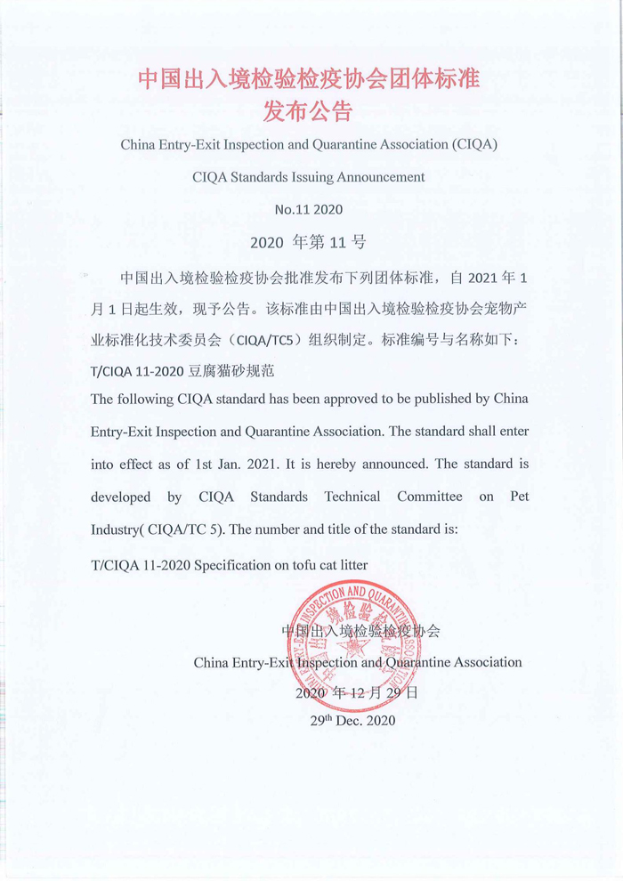 您现在的位置是:首页 > 团体标准文件 中国出入境检验检疫协会团体标准发布公告《豆腐猫砂规范》 发布日期:2020-12-30 字体: 【小】 【中】 【大】 分享: 热门文章: 接棒启新航 聚力向未来 | 中国出入境检验检疫协会第六届第一次会员代表大会[2026-01-28] 检测和校准实验室认可技术培训班在西安成功举办[2025-12-16] 重磅!中国出入境检验检疫协会国际贸易便利化分会正式成立[2025-11-22] 第七届国际检博会圆满举办:链动全产业链,共启检验检测新生态[2025-11-17] 中国出入境检验检疫协会参加第八届中国国际进口博览会及相关活动[2025-11-11] 海关资讯 2025年港珠澳大桥口岸进出口货值超3000亿元 去年全国海关查获外来物种5439批次——防范口岸入侵风险取得突出成效 覆盖全球约1/3经济总量,RCEP正式生效四年了——“家门口”的外贸生意越来越旺 粤港澳大湾区内地九市外贸规模创历史新高 海关总署公告2026年第12号(关于启动进出口货物多式联运(海铁、水水部分)业务模式试点相关事项的公告) 海关总署 农业农村部公告2026年第11号(关于解除巴西南里奥格郎德州新城疫疫情禁令的公告) “十五五”时期海关将适度扩大进口 海南自贸港封关运作“满月”